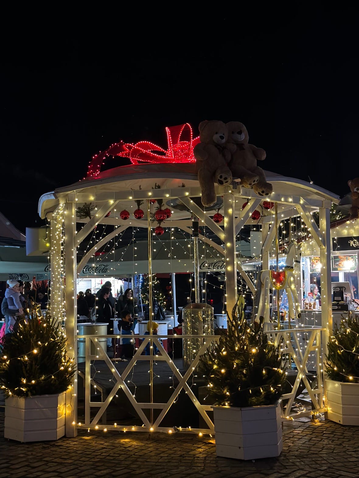 Na Korzu možete uživati u raznim blagdanskim delicijama poput debrecinki (6,50 €), hot dogova (3-5 €), fritula (4 €), i nezaobilaznog kuhanog vina (3,50€). Za ljubitelje nečeg drugačijeg, tu su i kuhani Somersby (3,50 €) te vrući pelin Antique (8 €). Ovu lokacija krasi veliki božićni bor i svjetlosna kugla, koja je savršena za fotografije podno zgrade Gradske vijećnice.