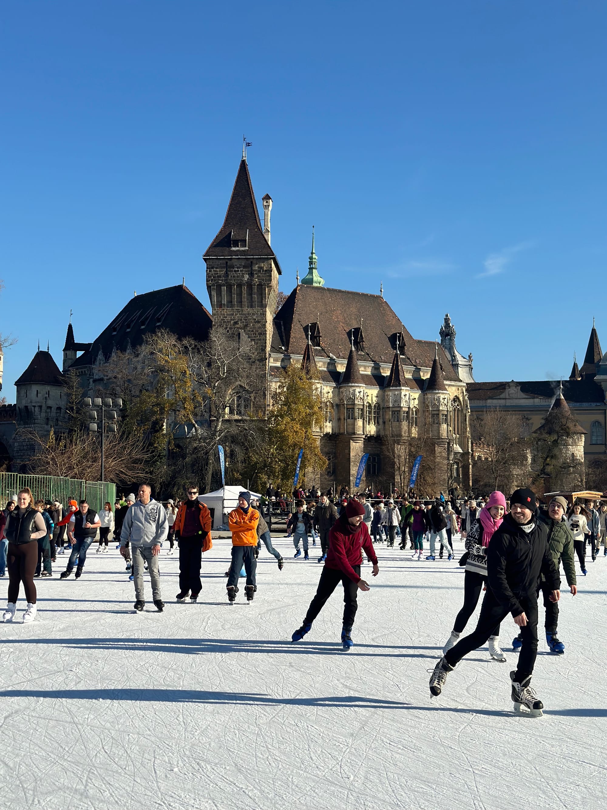 Iza Trga Heroja, podno Dvorca Vajdahunyad u Gradskom parku tzv. Városliget, ovo klizalište jedno je od najljepših u Europi. Radno vrijeme je podijeljeno na dva termina, pa se tako možete klizati ujutro ili poslijepodne kako slijedi:
