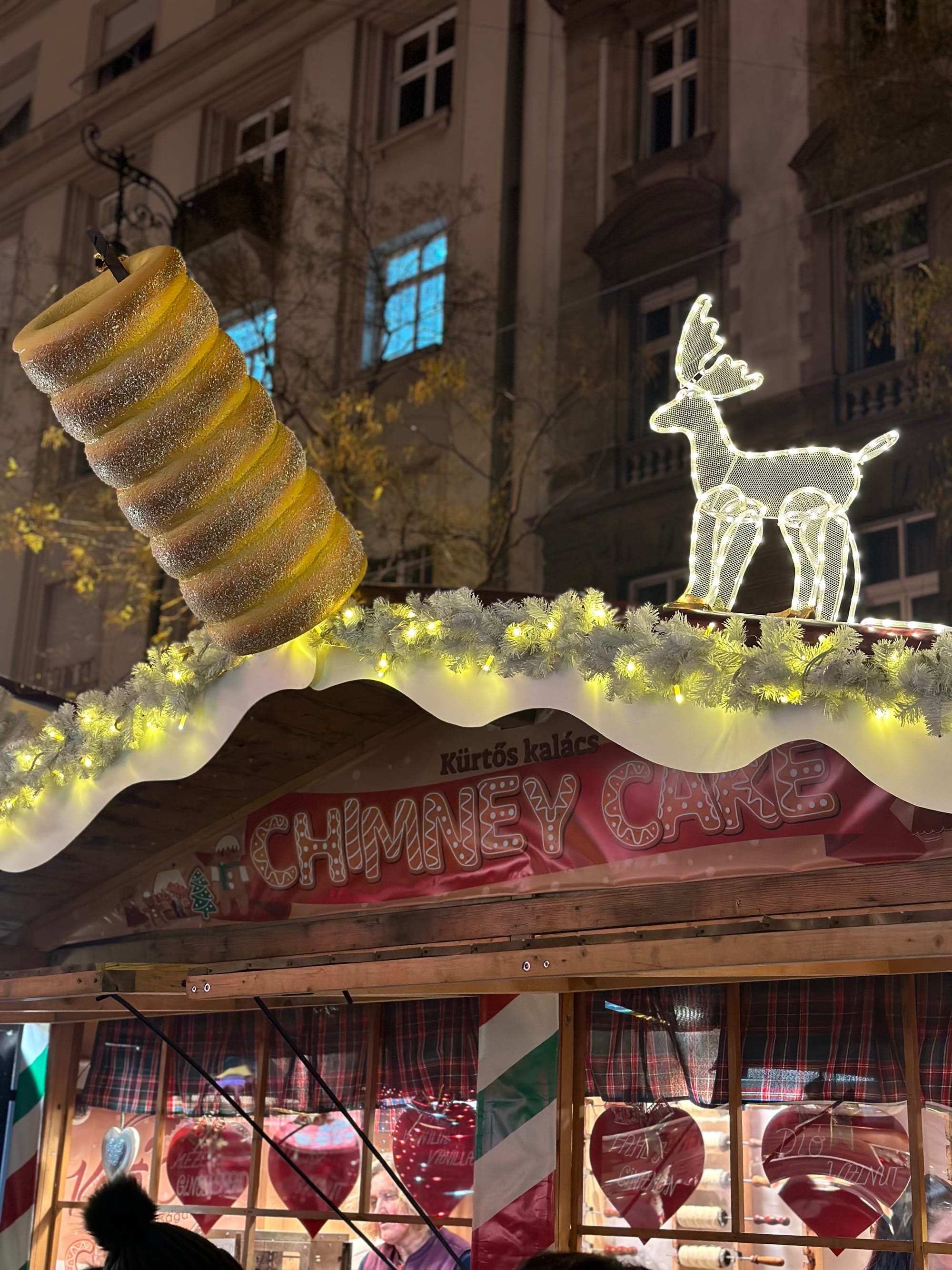 - Kürtőskalács (kurtoš) – Slatki kolač od dizanog tijesta pečen na valjku, posut šećerom ili cimetom. Osnovna verzija košta 2500 HUF (oko 6,30 €). Za punjenja poput Nutelle ili pistacije trebate otići na Deák Ferenc ili Váci ulicu.