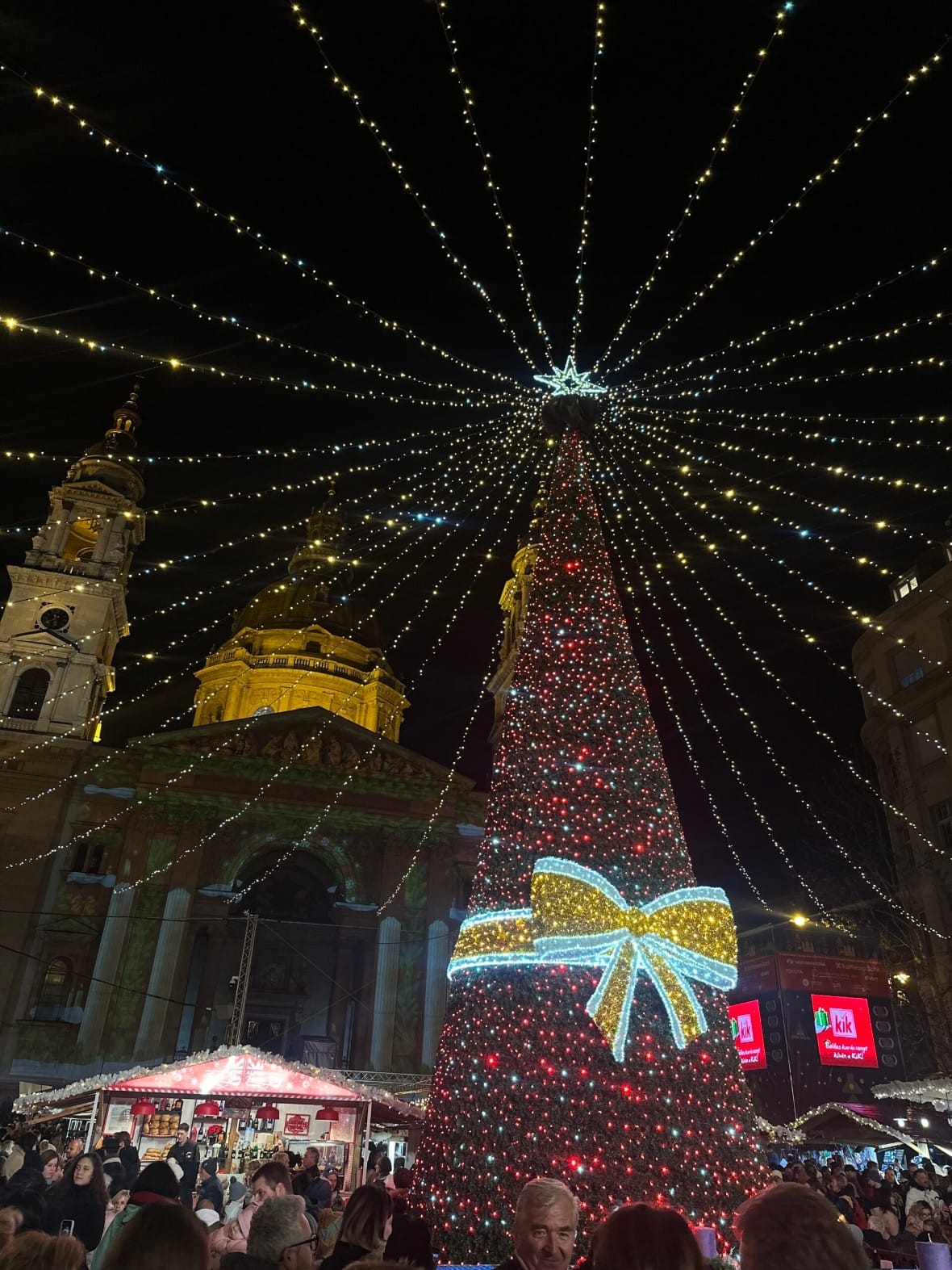 Najljepši adventski sajam nalazi se ispred Bazilike sv. Stjepana. Okićeni bor u središtu trga, lampice iznad kućica i svjetlosne projekcije na pročelju bazilike pravi su doživljaj. Projekcije traju oko 5 minuta i prikazuju se svakih 10-15 minuta.