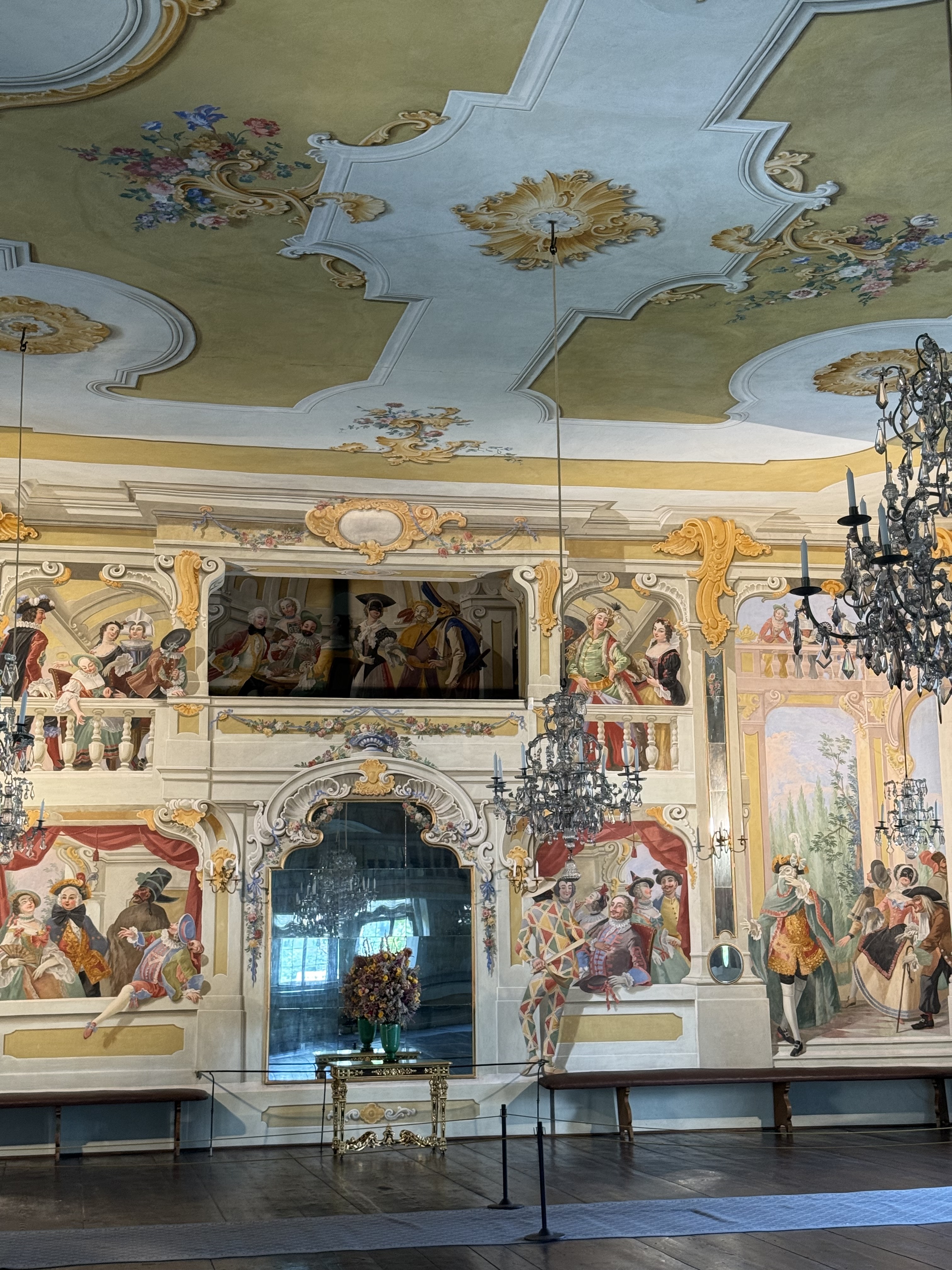 U sklopu dvorca nalazi se i jedno od najposebnijih mjesta, barokno kazalište, jedno od rijetkih u Europi koje je ostalo gotovo netaknuto, s originalnim kulisama i mehanizmima. Mene je najviše dojmila plesna dvorana zbog oslikanih zidova.
