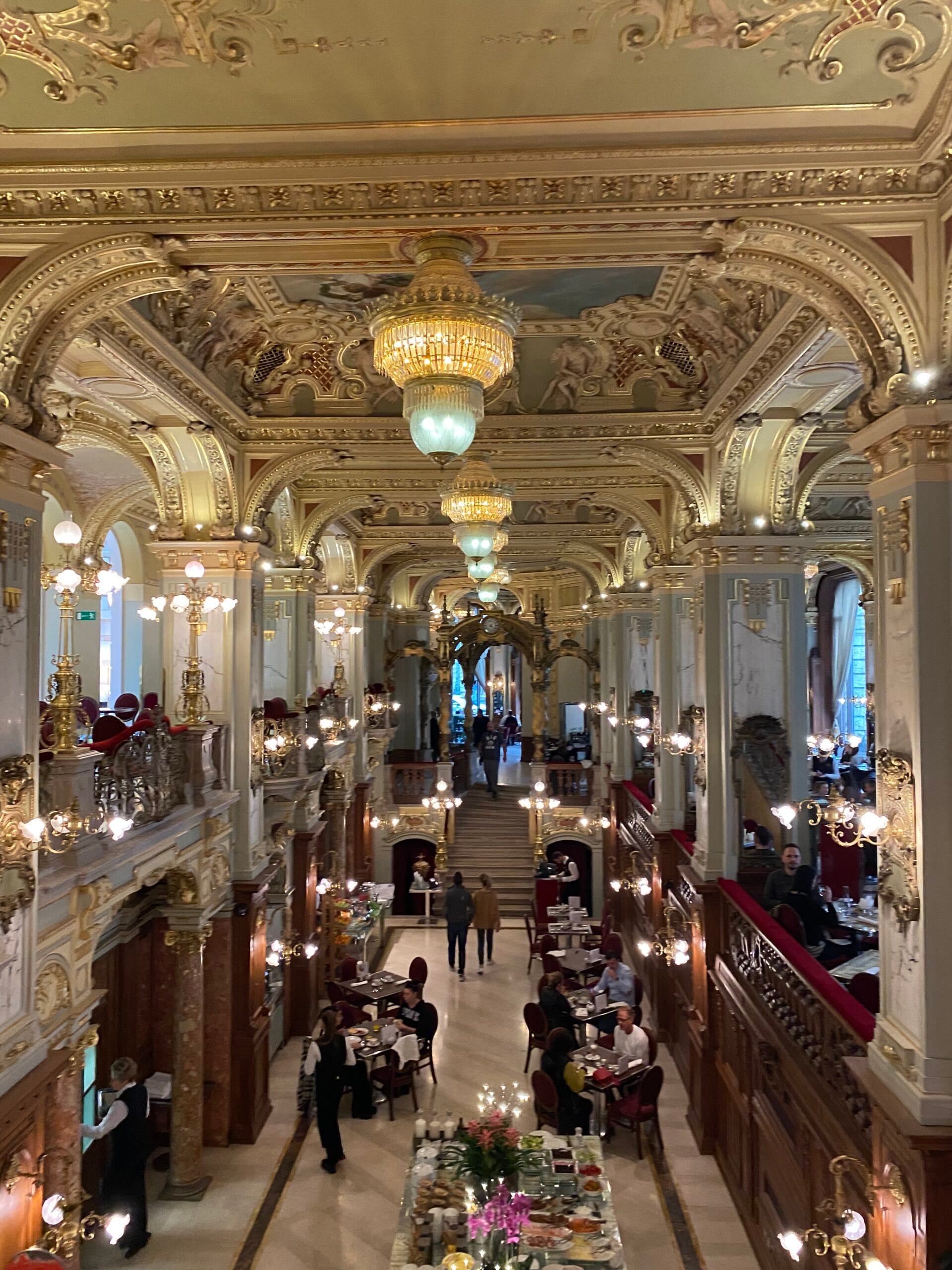 Prije nego što pređemo na barove ne možemo ne spomenuti kultni i svjetski poznati kafić, često nazivan i naljepši kafić na svijetu. Radi se o New York Cafeu, koji je smješten u istoimenoj luksuznoj palači. Interijer ostavlja bez daha i svakom tko ide u Budimpeštu preporučujem da ode barem jednom ovdje. Cijena su baš napuhane i više nema rezevacije ako dolazite na brunch ili samo popiti kavu. Morate čekati u redu. Svoje mjesto možete rezervirati za večeru. A ako odsjednete u hotelu Anantara i uzmete doručak moći ćete uživati u predivnom ambijentu. Dodatan savjet i mali trik, ako ne želite ništa konzumirati već samo vidjeti ambijent, nemojte ići na glavni ulaz kafića već na glavni ulaz hotela i samo ušećite. Kad dođete do lobbya odete lijevo u prostorije kafića.