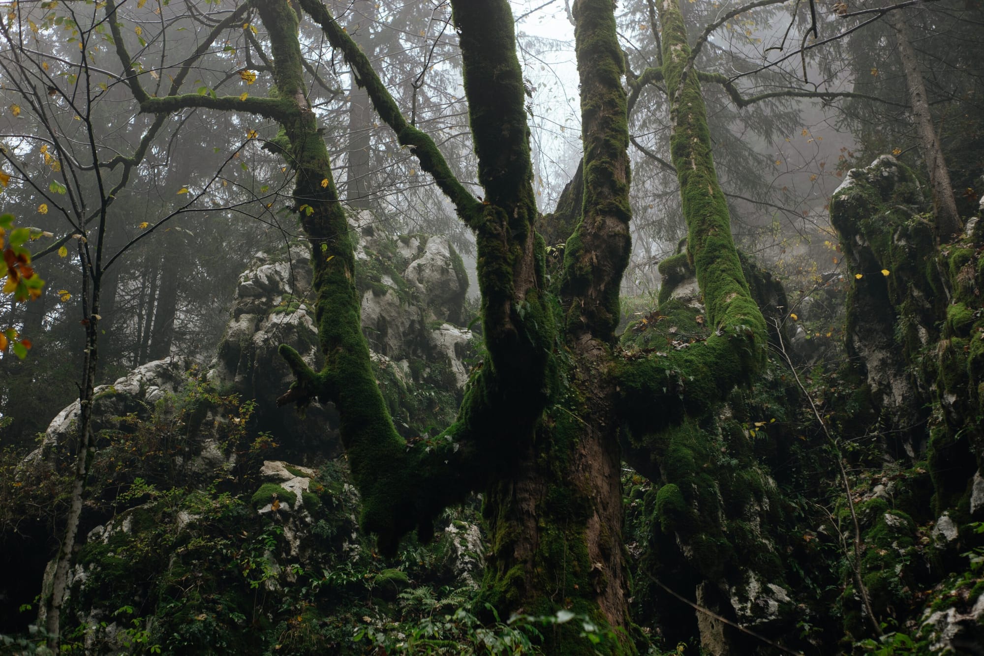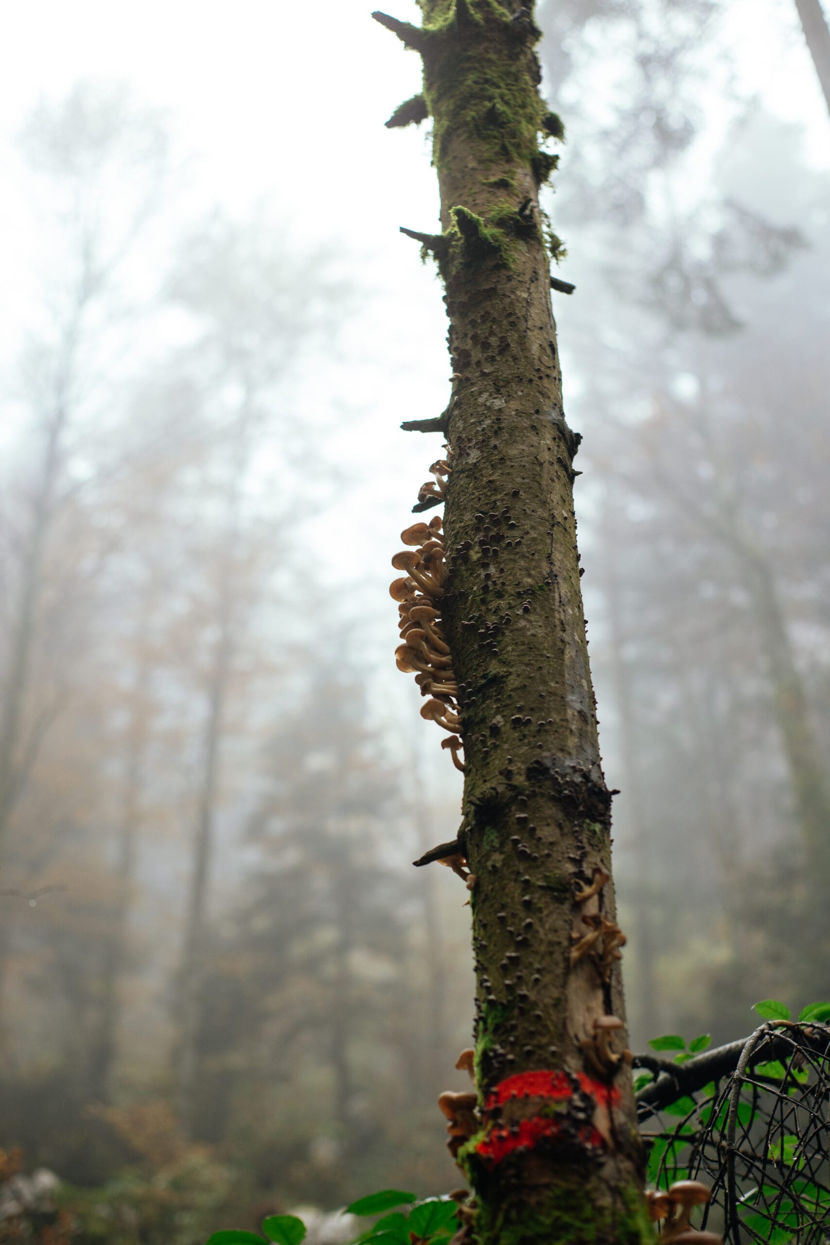 Sve je super išlo, penjali smo se, pratili znakove i tako hodali, hodali i hodali. Putem smo promatrali gljive kojih je bilo zaista puno i u raznim oblicima. No nakon nekog vremena nam je postalo čudno kako već dugo hodamo, a nismo vidjeli nikakav znak. Uz pomoć Google Mapsa koji u šumi nikako ne radi, ali bar se vidi otprilike gdje si, smo skužili da smo točno podno Bijelih stijena, ali smo se mi već lagano počeli spuštati. Kako je bila magla, i što smo se višlje penjali, to je bila sve gušća, rekli smo ajmo se mi okrenuti jer je već bilo oko dva poslijepodne, hodali smo već tri sata, što znači da nam još toliko treba nazad pa da se ne smrači. Nastavili smo još malo, ali smo onda teškog srca odustali, no bilo nam je jako čudno kako nismo uspjeli. Na pola puta sam se ja slučajno okrenuo i vidio znak za skretanje desno, a mi smo na tom dijelu skrenuli lijevo i tako fulali put. Ali točno tamo je magla bila dosta gusta i ta strelica na stupu se toliko slabo vidjela da se doslovni vidi samo ako se zagledaš u nju. Sve u svemu, do Bijelih stijena nismo stigli, ali smo prehodali 20 kilometara i bili smo sretni i crveni u licima od hladnog svježeg zraka i jedva smo čekali vratiti se u Prigorku jer nam je u mislima bila fina domaća večera koja nas je čekala. Nakon večere smo se doslovno ukomirali.