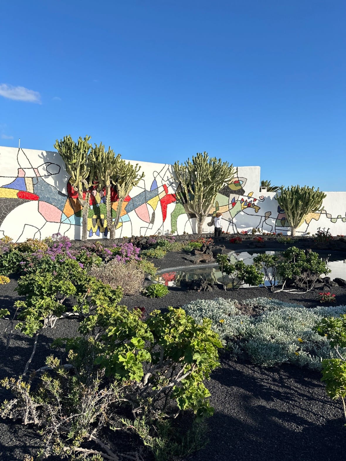 Poslijepodne smo posjetili Fundación César Manrique, kuću slavnog umjetnika i arhitekta koji je ostavio neizbrisiv trag na Lanzaroteu. Njegova kuća smještena je unutar vulkanske stijene, a svaki detalj odiše skladom prirode i umjetnosti. Unutrašnjost kuće obuhvaća pet prirodnih vulkanskih mjehura povezanih tunelima, stvarajući jedinstvene prostore ispunjene umjetničkim djelima. Vrt oko kuće također je impresivan, s bujnom vegetacijom koja izranja iz crne vulkanske zemlje, pružajući upečatljiv kontrast boja i tekstura. Fundacija osnovana 1982. godine kao privatna neprofitna organizacija s ciljem očuvanja i promicanja Manriqueovog umjetničkog naslijeđa. Osim što pruža uvid u život i rad umjetnika, fundacija se bavi i podizanjem svijesti o umjetnosti, kulturi i okolišu Lanzarotea. Cijena ulaznice je 10 €.