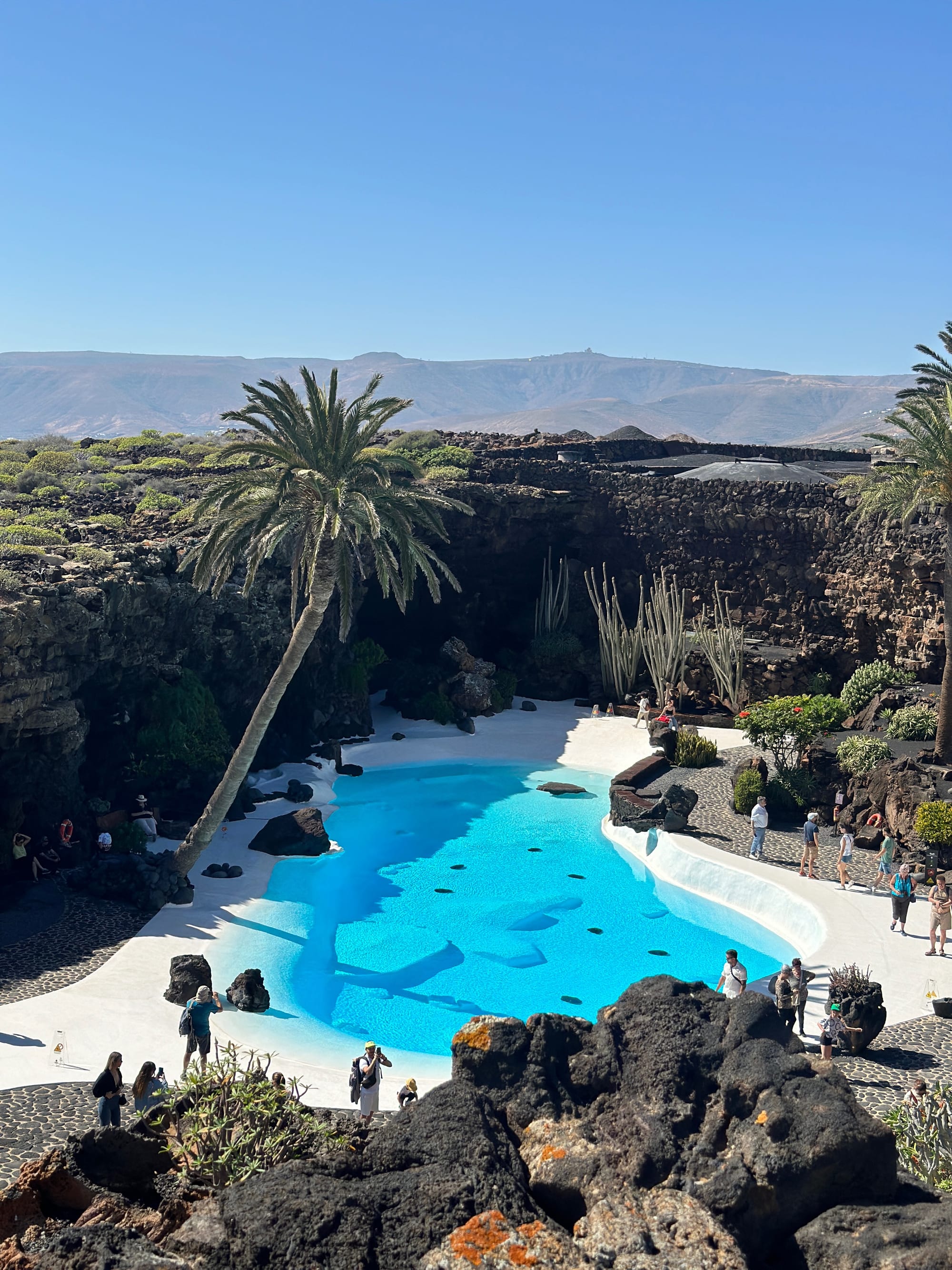 Nakon doručka otišli smo u Jameos del Agua, podzemne špilje pretvorene u kulturni centar. Također djelo Césara Manriquea. U unutrašnjosti se nalazi jezero s rijetkim bijelim rakovima, a ambijent je jednostavno magičan. Ovaj jedinstveni kompleks, nastao je unutar niza vulkanskih špilja formiranih erupcijom vulkana Monte Corona, prije nekoliko tisuća godina. Kompleks je poseban i po bazenu koji se nalazi s gorenja strane, a tu je i koncertna dvorana unutar špilje. Unutar kompleksa nalazi se i Museo de los Volcanes. Interaktivan muzej posvećen proučavanju i očuvanju vulkanskog naslijeđa otoka, pružajući posjetiteljima dubinsko razumijevanje geoloških procesa koji su oblikovali Lanzarote. Muzej se sastoji od deset tematskih prostorija. Najzanimljiviji dio je VR putovanje kroz lava tunel koji je ukupno dug 6 kilometara, od čega se najmanje jedan i pol kilometara nalazi pod vodom, zbog čega je dobio naziv Tunel Atlantide. Cijena ulaznice je 15 €, odnosno 20 € ako želite posjetiti i muzej. Preporučujem da ulaznicu kupite online jer može biti gužva na blagajni pa da ne čekate. Ovo je jedino mjesto gdje su gužve i gdje je dobro ulaznice kupiti unaprijed.