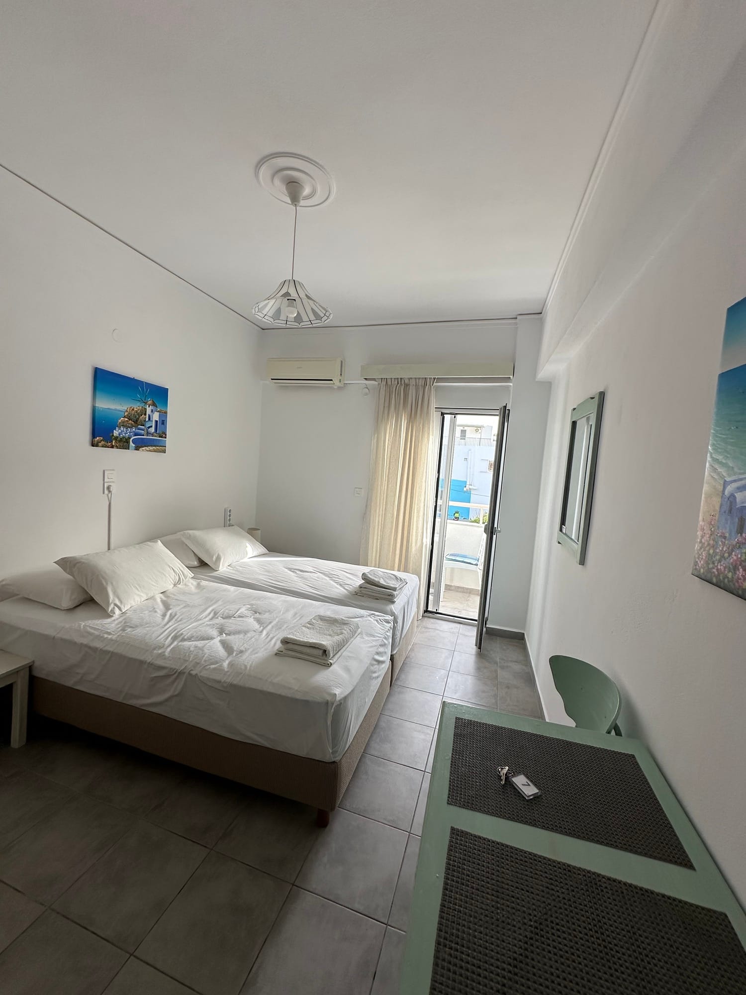 Otok Kos nije velik te postoji nekoliko mjesta u kojem možete pronaći smještaje. Najpopularniji je glavni grad otoka, Kos, a tu su mjesta poput Kardamaine, Kefalosa, Kamposa itd. Mi smo se odlučili za Kardamainu iz dva razloga: pronašli smo smještaj za odlične novce, studio apartman za 2 osobe s prvim redom do mora za 250€ za 7 dana po osobi. Super stvar je što smo odmah ispod smještaja imali i restoran te plažu do koje nam je trebalo doslovno pola minute. U restoranu smo jeli skoro svaki dan jer u Grčkoj vrlo često ako jedete u restoranu koji ima plažu i ležaljke, korištenje istih će vam biti besplatno. Drugi razlog zašto smo baš boravili ovdje je što se Kardamaina nalazi svega 7 km od aerodroma.