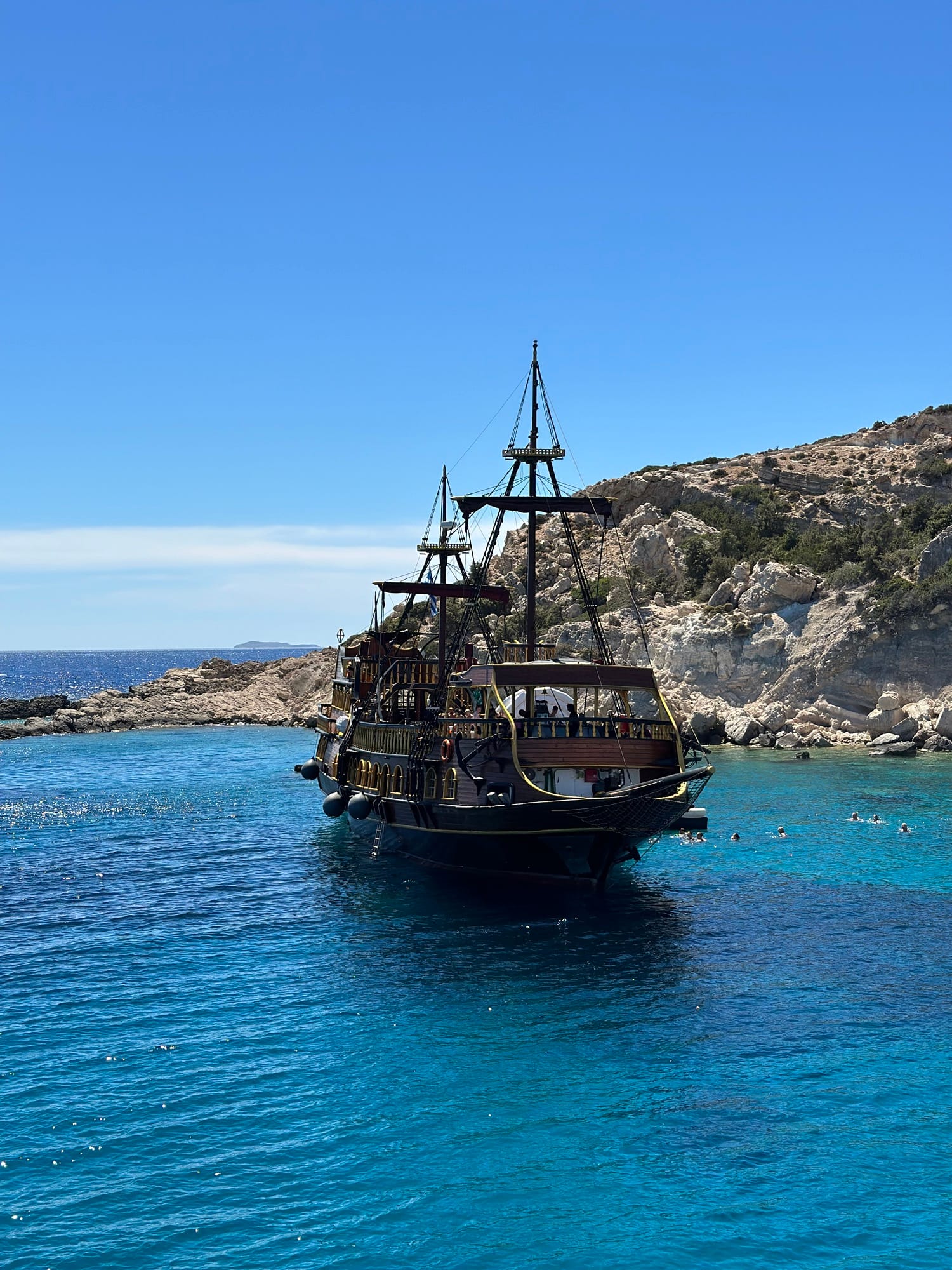 Dok smo plovili, uživali smo u odličnoj muzici i još boljoj atmosferi na brodu, koji je bio gusarski. Agencija Sail Away Kos pobrinula se za sve detalje, uključujući ručak na brodu. Pića se dodatno naplaćuju, a kokteli su dostupni po cijeni od oko 5 €. Cijena ovog izleta je 35 €.