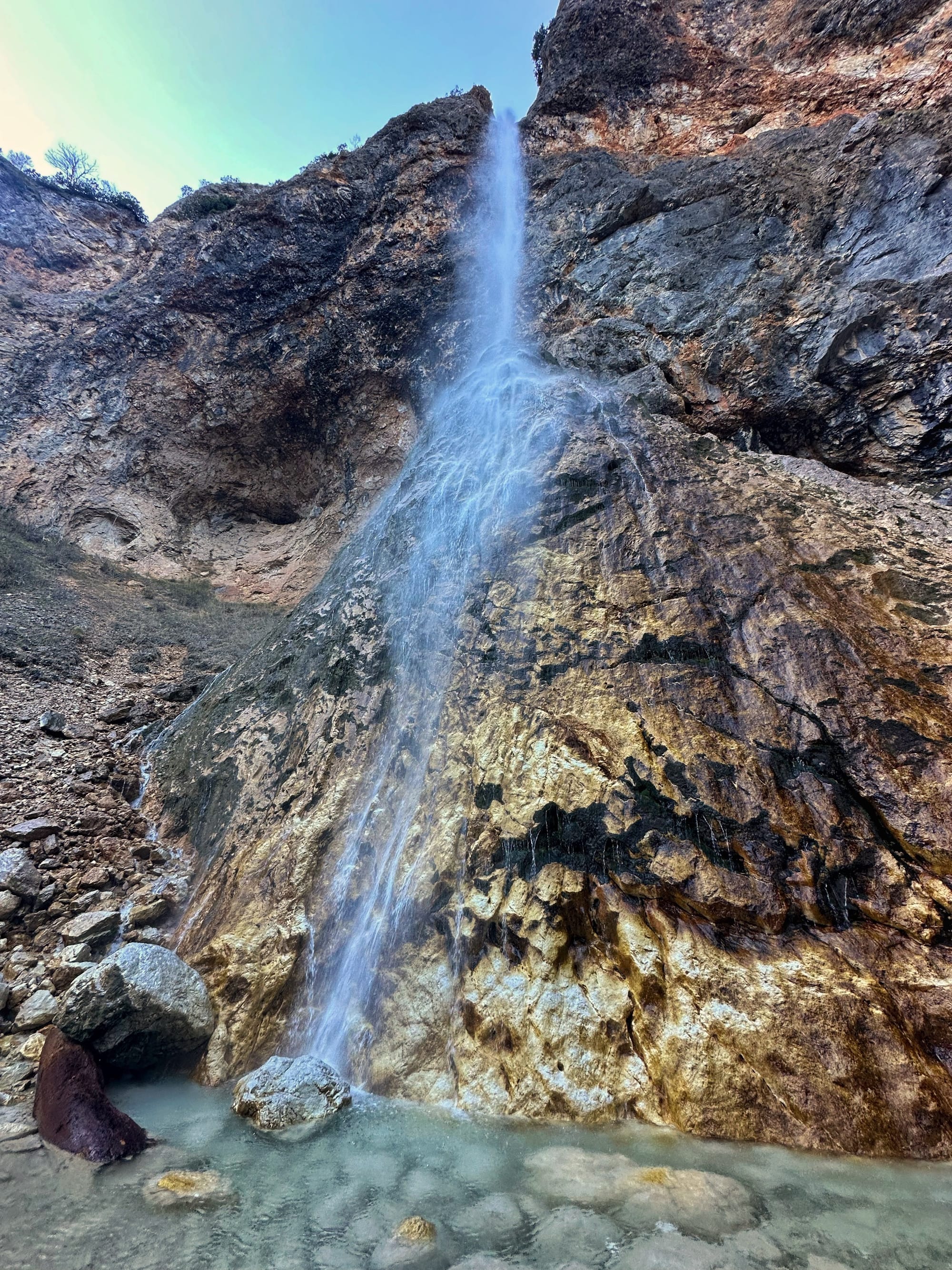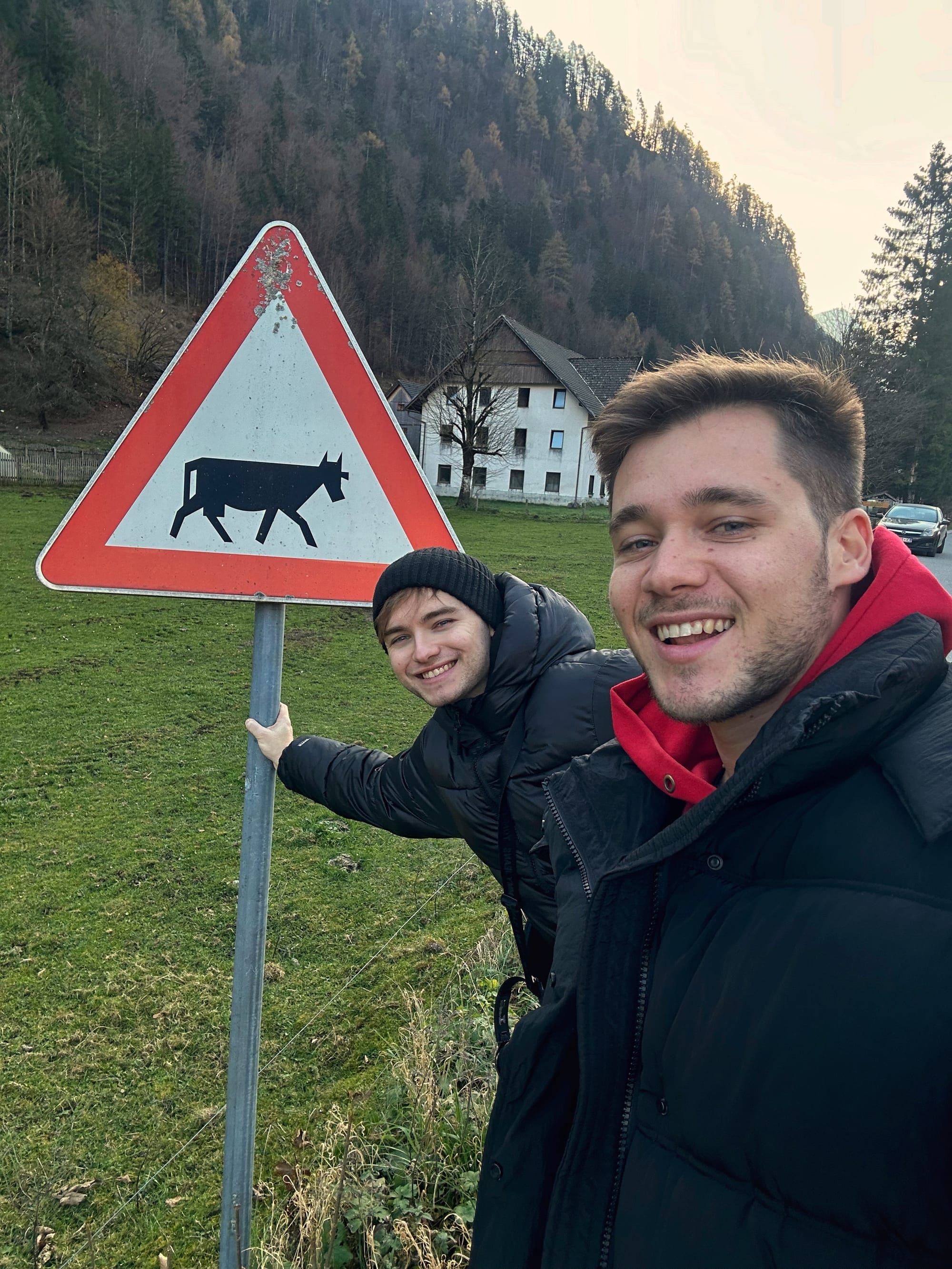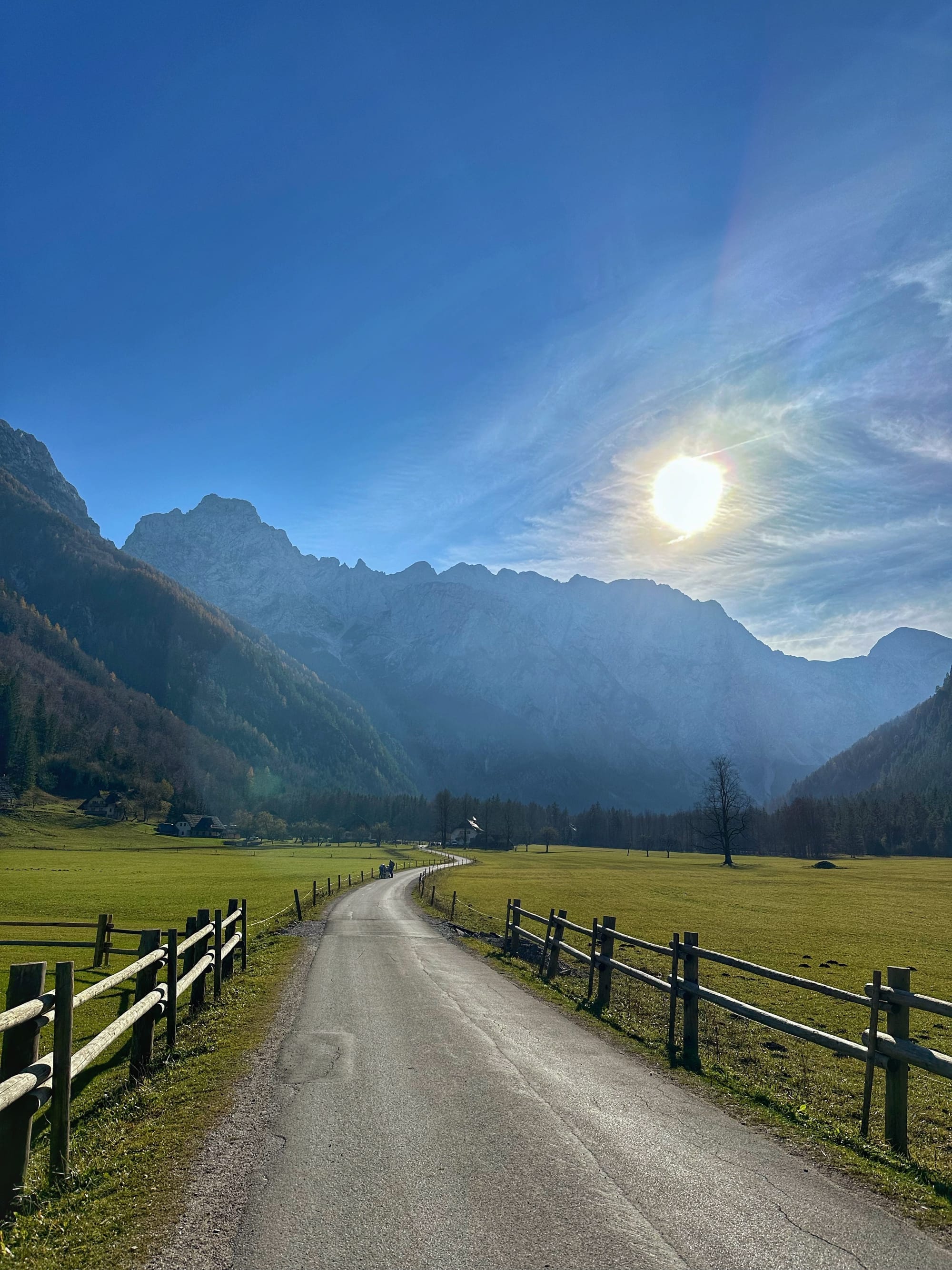 Vožnja prema Logarskoj dolini sama po sebi je čarobno iskustvo. Cesta prati rijeku Savinju, čija tirkizno plava voda posebno dolazi do izražaja pod suncem. Iskoristili smo priliku za kratki odmor uz rijeku i uživali u miru i tišini prirode. Na putu smo prošli i kroz mjesto Solčava, koje je cijeli dan ostalo pod mrazom jer sunčeve zrake nisu uspjele probiti planinske obronke – prizor koji dodatno podsjeća na ljepotu i surovost zime u Alpama.