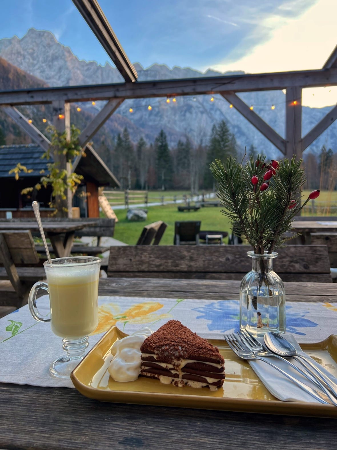 Nakon istraživanja doline, zaustavili smo se u Kmečkoj hiši Ojstrica, gdje smo uživali u slasnim domaćim specijalitetima. Posebno nas je oduševila torta Marlenka, bogata i sočna slastica od meda i oraha. Uz nju smo popili vruću čokoladu i čaj (oko 3 €), dok su cijene torti iznosile 5,50 €. Ova gostionica nudi topao ambijent i idealna je za predah uz domaće okuse.