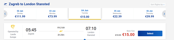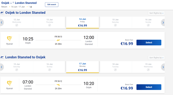 Iz Osijeka u lipnju jeftinije možete odletjeti samo u London i to po cijeni od oko 35€ za povratni let s ruksakom. Imate dvije opcije, kraćeg i dužeg putovanja.