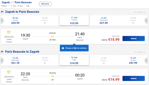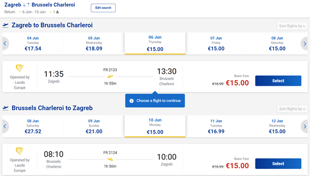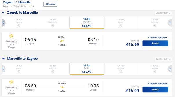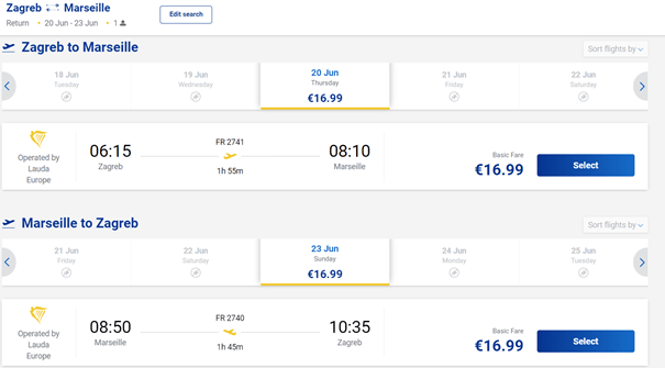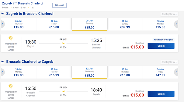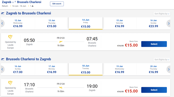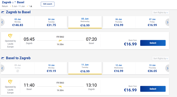 - Let iz Zagreba za Basel: 06.06. / 07.06. / 08.06. / 11.06. / 12.06. / 13.06. / 14.06. / 18.06. / 19.06. / 21.06. / 25.06. / 26.06. / 27.06. / 28.06.