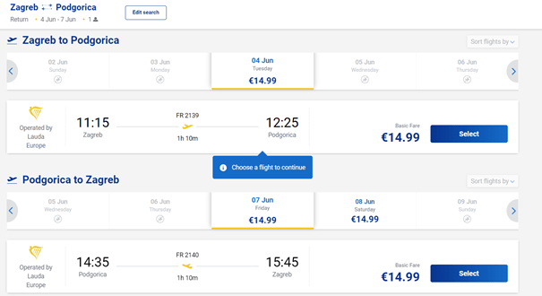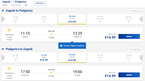 1.1. Povratni letovi po cijeni od 30€ do 35€