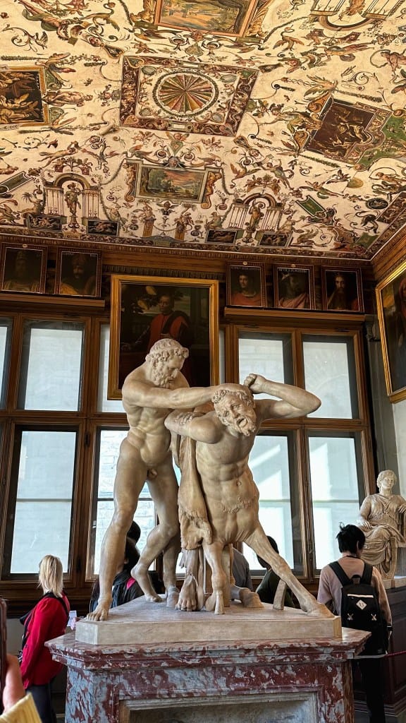 Jutro je započelo vrlo rano, već oko pola sedam s obzirom na to da smo znali gdje se nalazimo i da ako želimo super fotke pred jednom od najpoznatijih građevina u Firenci, a to je Duomo, da se moramo ustati prije svih. Nakon fotkanja uzeli smo usputni doručak u Rivoire na Piazza della Signoria te smo se uputili do Galerije Uffizi koja se otvarala u 8:15 sati, ali je već 45 minuta ranije bila ogromna gužva te je to bio dodatan razlog za ranim buđenjem. Gužva je bila očekivana, s obzirom na to da je prvu nedjelju u mjesecu u Firenci preko 430 muzeja i lokacija besplatno. Kojih pola sata nakon otvaranja uspjeli smo ući u galeriju. U galeriji ćete pronaći razna remek djela poput Rođenja Venere, talijanskog slikara Botticellija.