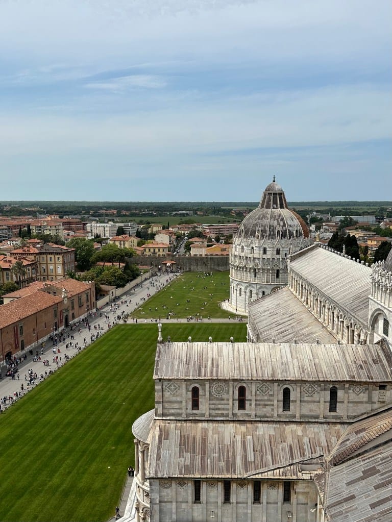 Da, kosi toranj u Pisi je stvarno kos. Dok smo se penjali shvatili smo da se i osjeti nagibanje malo u jednu pa malo u drugu stranu. Bilo je zanimljivo i na stepenicama vidjeti kako su na jednom dijelu udubljene malo s jedne strane, a na drugom dijelu s druge strane i tako naizmjence sve do vrha.