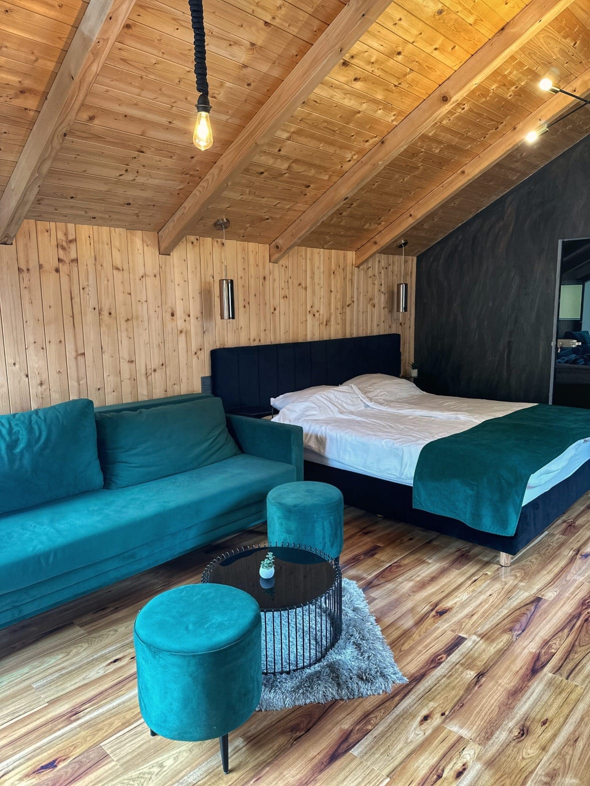 U nastavku vas vodim na najluksuznije glamping iskustvo kontinentalne Hrvatske - Glamping resort Halicanum, smještenog u prekrasnom Međimurju, u Termama Sveti Martin. Naziv ovog resorta nosi simboliku drevnog grada Halicanuma iz prvog stoljeća, današnjeg Svetog Martina na Muri. Naša glamping kućica bila je pravo utočište luksuza, s kupaonicom opremljenom tušem, prostranom sobom s velikim francuskim krevetom i trosjedom na razvlačenje te ogromnim 65-inčnim televizorom za večernju relaksaciju. Poseban dio boravka bila je privatna sauna i kada na terasi, što je dodalo novu dimenziju opuštanju u prirodi. Dok smaragdno zeleni namještaj, u kombinaciji s drvom, stvara poseban osjećaj elegancije i profinjenosti.