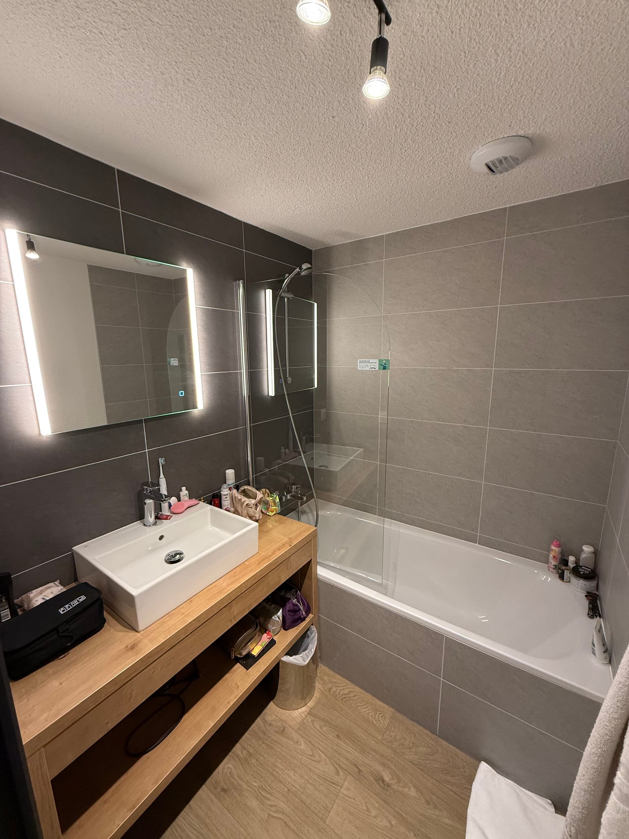 Kada smo već kod apartmana, odlično su opremljeni i moderni. Ima apartmana s 4, 6 i 8 ležajeva, s time da se u Francuskoj i kauč na razvlačenje u dnevnoj sobi smatra ležajem. Spavaće sobe raspolažu s bračnim krevetom, dva odvojena kreveta, odnosno krevetom na kat. Ovisno o veličini apartmana, postoje 2 kupaonice, jedna s kadom i jedna tuš kabinom te odvojenim wcom. U dnevnom boravku ima kauč i televizor, a spojen je s blagovaonom i ful opremljenom kuhinjom. Veliki frižider, indukcijska ploča, neki apartmani imaju pećnicu ili mikrovalnu. Ima toster i svo kuhinjsko posuđe te perilica za pranje suđa. Dobijete 2 seta ručnika, ali ih ne mijenjaju. Ako trebate zamjenu, možete nadoplatiti 8€. Ono što trebate ponijeti je WC papir, jer dobijete 2 role, što nije dosta za 7 dana za 4 ili više ljudi, a nema nadopune. Također vam treba sapun za ruke i detrdžent za pranje suđa i spužvica. Također za bazen nema papuča, ogrtača i ručnika. Baka i ja smo sa smještajem bili izuzetno zadovoljni, krevet je bio vrlo udoban, a u ormarima dovoljno mjesta da se ostave stvari. U kupaonici ima i fen.