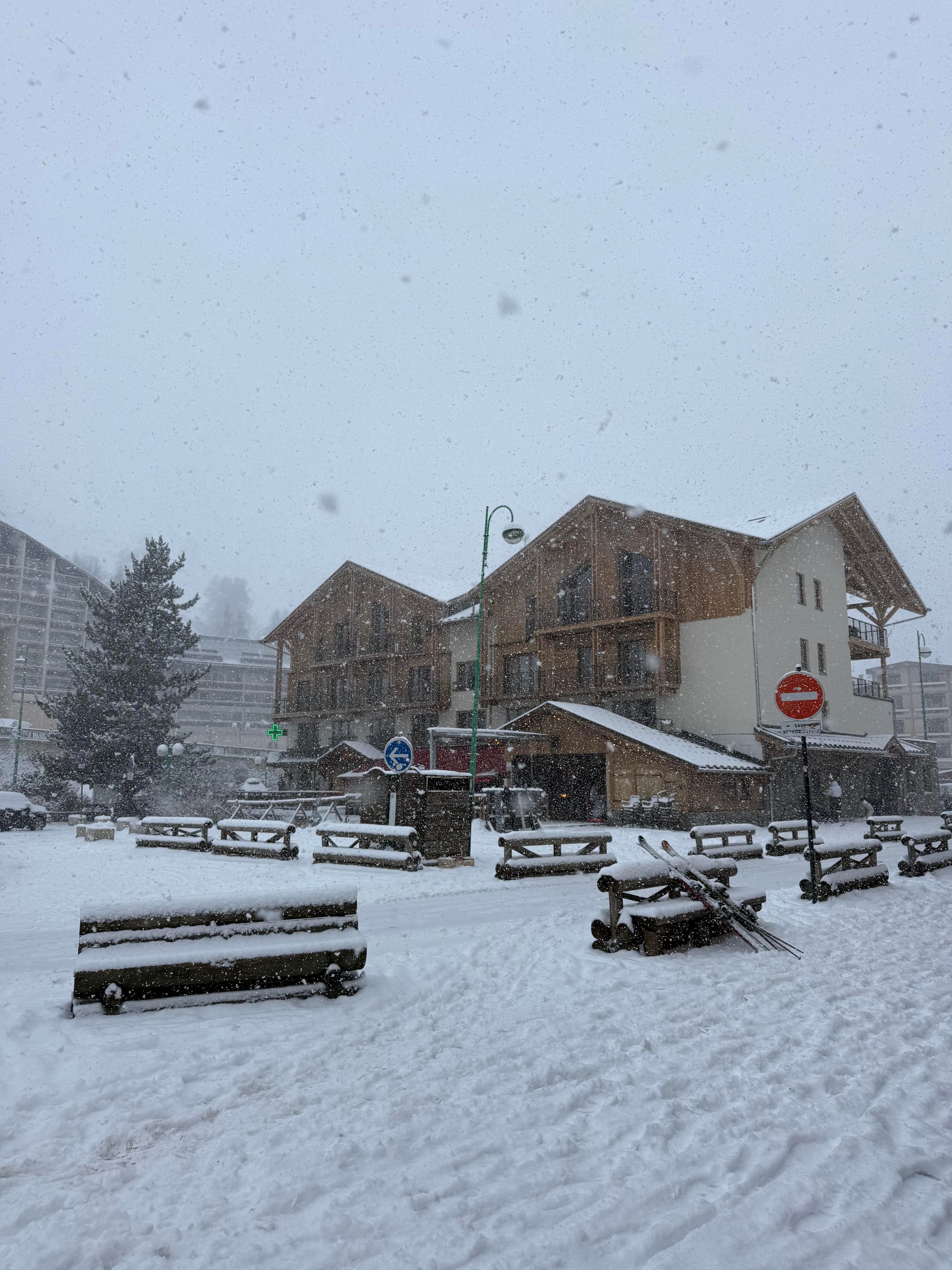 Nema doručka, jer apartmani imaju kuhinju, ali postoji mogućnost da naručite pekarske proizvode, bagete, kroasane, pain au chocolat po skroz pristupačnim cijenama, odnosno onima kakve su i kod nas u pekarama. Vrlo je važno da to napravite na recepciji dan ranije. Kao što sam već spomenuo, ima prostorija u kojoj ostavljate skijašku opremu i to na sigurnom jer svaki apartman ima svoj ormarić koji se zaključava.
