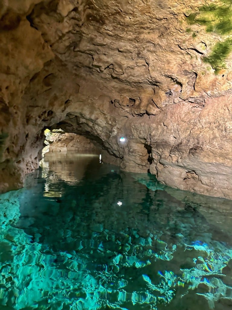 Nakon fotosešna, popeli smo se istima te ubrzo stigli i do glavnog razloga ovog vikend putovanja nabrzaka. Do špilje, glavne turističke atrakcije u gradu. Ispod grada postoji cijeli sustav špilja. Tako je ova, koja se danas koristi za turističke svrhe, nekada bila zasebna špilja, ali je spajanjem bolničke špilje postala dio tog sustava. Posebna je upravo zbog jezera koje se nalazi unutar špilje. Jezerom možete i zaveslati. Vožnja traje 15ak minuta te je vrlo uzbudljivo. Sve je jako usko i nisko, tako da se pripremite na izvijanje i savijanje. Temperatura unutar špilje je kroz cijelu godinu oko 20°C. Ulaznica košta 10€ za odrasle osobe, a 7€ za djecu. Kupite ih online te izaberite točno vrijeme posjete. U istu je uključen i posjet stalnoj izložbi, koja govori o nastanku špilje te cijeloj evoluciji. Dok veslate, slikat će vas, odmah na početku, par metara od samog starta. Sliku možete kupiti pri izlasku te košta oko 3.50€. Sve možete platiti karticom.