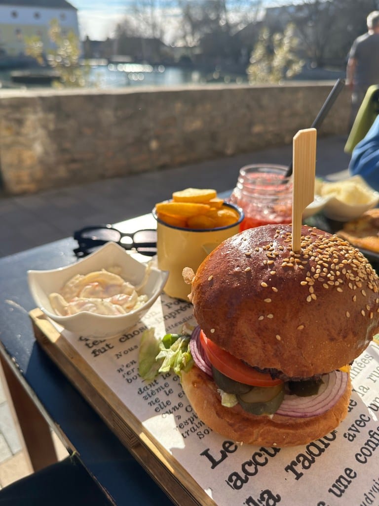 Nakon super doživljaja, vratili smo se do mlinskog jezera na ručak u već spomenuti restoran, Tópart Bisztró. Nude razna jela, od tipičnih mađarskih, preko tjestenine do burgera. Ja sam se odlučio za burger koji me koštao 10€. Cijene se uglavnom kreću između 10 i 15€. Preporučam vam da za piće uzmete limunadu, koje su tipične u Mađarskoj. Prefine su, ja ih obožavam i svaki put naručim kad god sam u Mađarskoj. Ima raznih okusa, meni je najdraža ona od maline u čaši od pola litre. Imajte na umu da su gazirane. Cijena im je oko 2,5€.