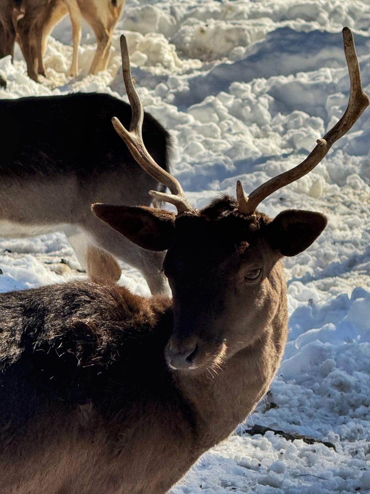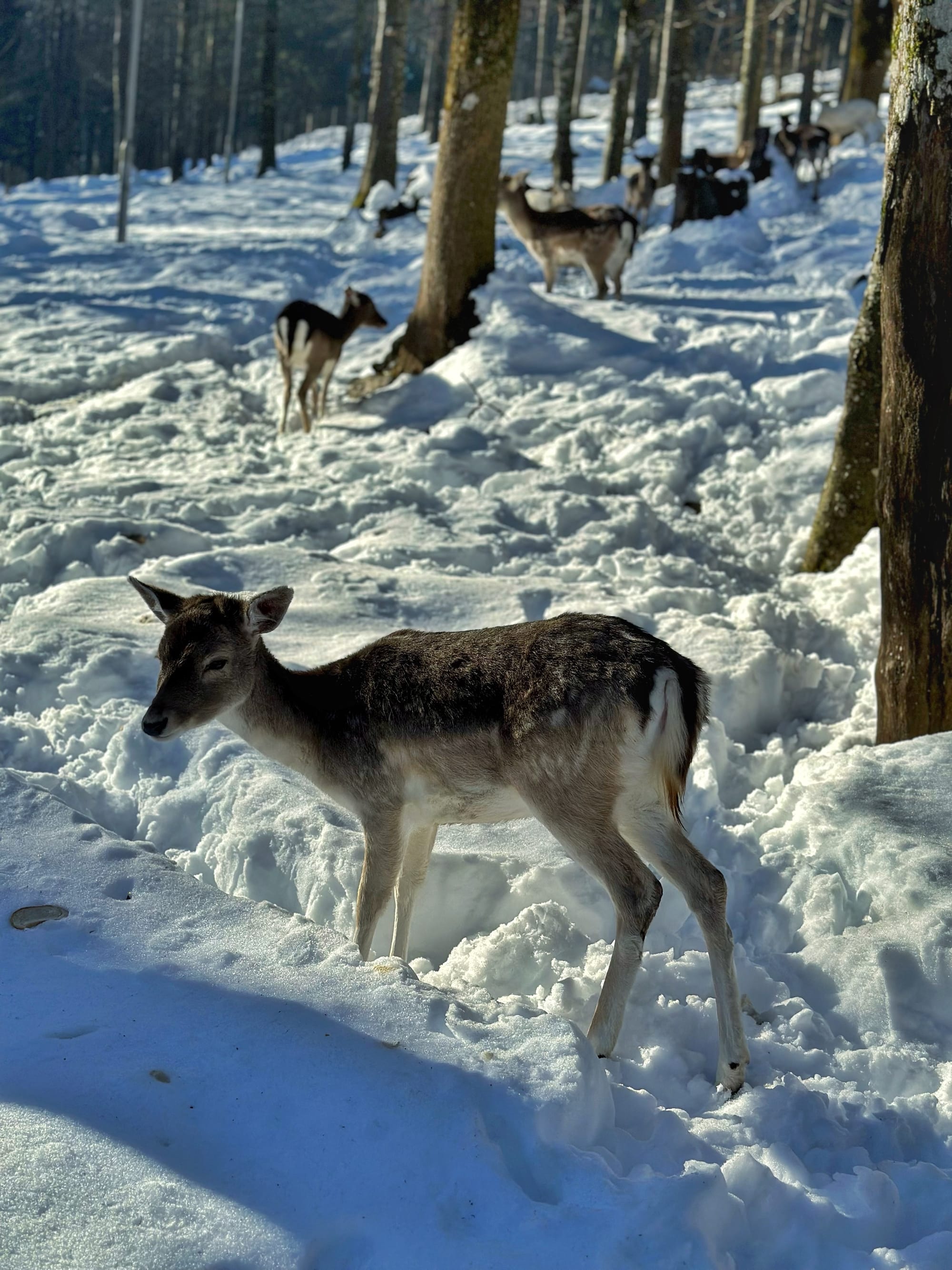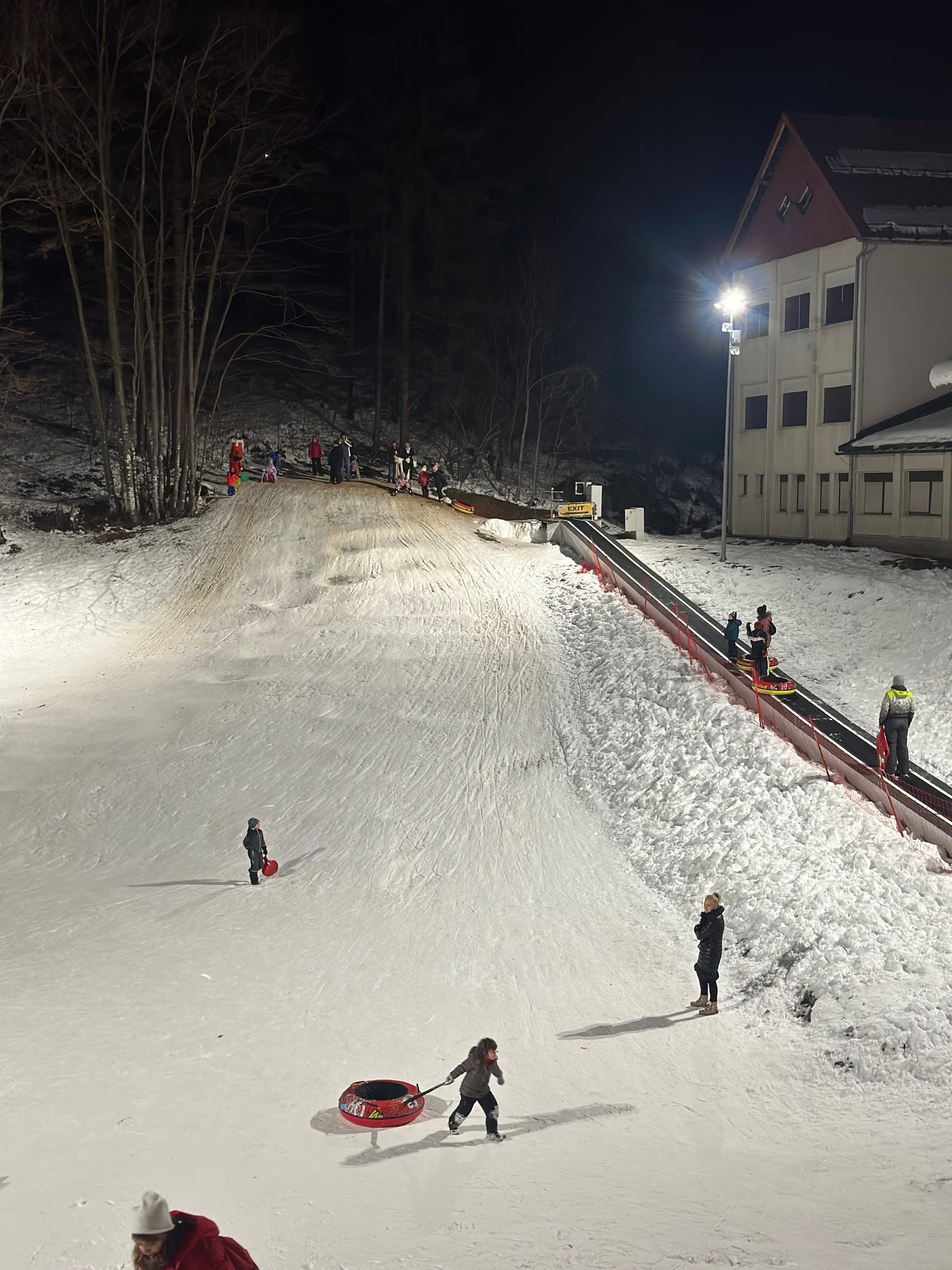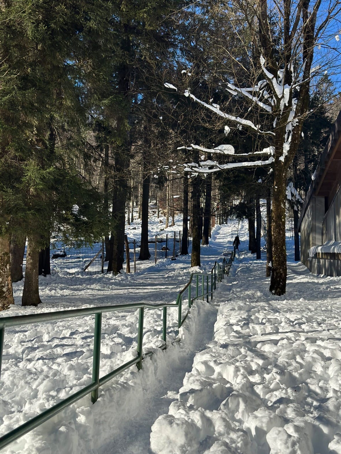 Prva postaja bila nam je Park kralja Tomislava. Iznad parka smješten je glavni razlog odlaska u Delnice, veliki ograđeni zvjerinjak u kojem obitava pitomo krdo jelena lopatara. Jeleni se često okupljaju uz ogradu, gdje ih možete nahraniti sjenom iz spremnika podno Lovačkog doma, dok se s terase doma pruža pogled na Delnice. U sklopu doma nalazi se i pansion u kojem za 12€ možete isprobati Wildburger s mesom divljači. Mi nažalost nismo uspjeli jer je kuhinja taman imala poplavu pa se čekao majstor, a restoran privremeno nije radio. Stoga smo se Ljubavnom stazom uputili na sanjkalište Rusovi dolci, udaljeno svega 10 minuta pješice. Ako nemate svoje sanjke, kafić Pak kod klizališta nudi iznajmljivanje za 5€ po satu. Još bolje, na sanjkalištu možete besplatno posuditi gumene kotače za sanjkanje, samo trebate pričekati red. Staza je zabavna, ali oprez jer hupseri vas i vašu kralježnicu mogu iznenaditi. Sanjkalište je besplatno i otvoreno je do 19 sati, ali nekada ga znaju i ranije zatvoriti.