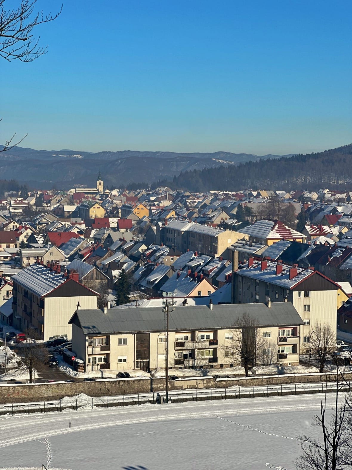 Vozeći se prema Delnicama, kroz Bosiljevo nismo naišli na ni jednu pahulju, no kako smo se približavali, snijeg je počeo prekrivati krajolik. U Delnicama nas je dočekalo više od 30 centimetara snježnog pokrivača, idealnog za sve zimske aktivnosti. Stigli smo oko 11 sati i, nakon kraćeg kruženja, parkirali se 15 minuta od centra.