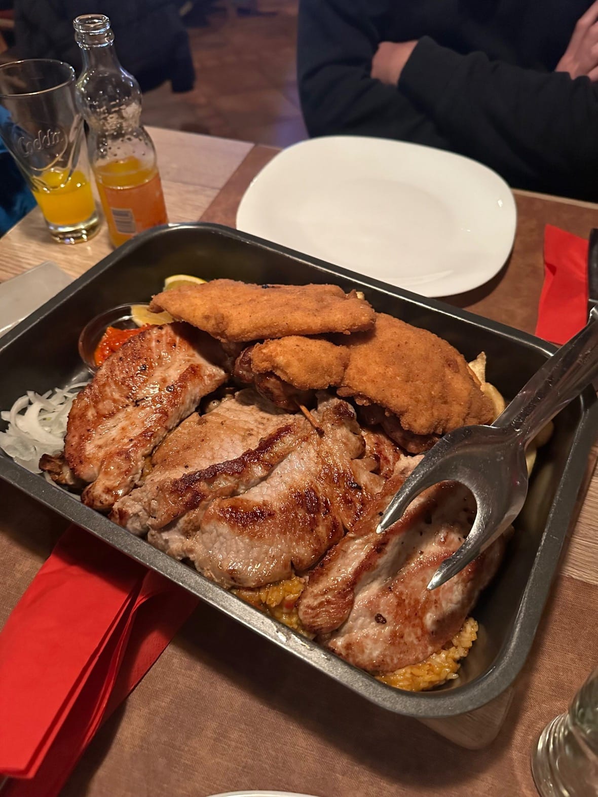 Dan smo završili u restoranu Tron, poznatom po izdašnim porcijama. Uzeli smo mesnu seljačku platu za dvije osobe, koja bi komotno nahranila troje. Cijene jela kreću se od 12 do 25€, a porcije su zaista obilne. Naša plata koštala je 36€, a dobili smo svinjski file, pohanu piletinu, puretinu sa žara, svinjski kare, gljive, đuveđ-rižu, pekarski krumpir i salatu. Za desert preporučujem domaće knedle sa šljivama.